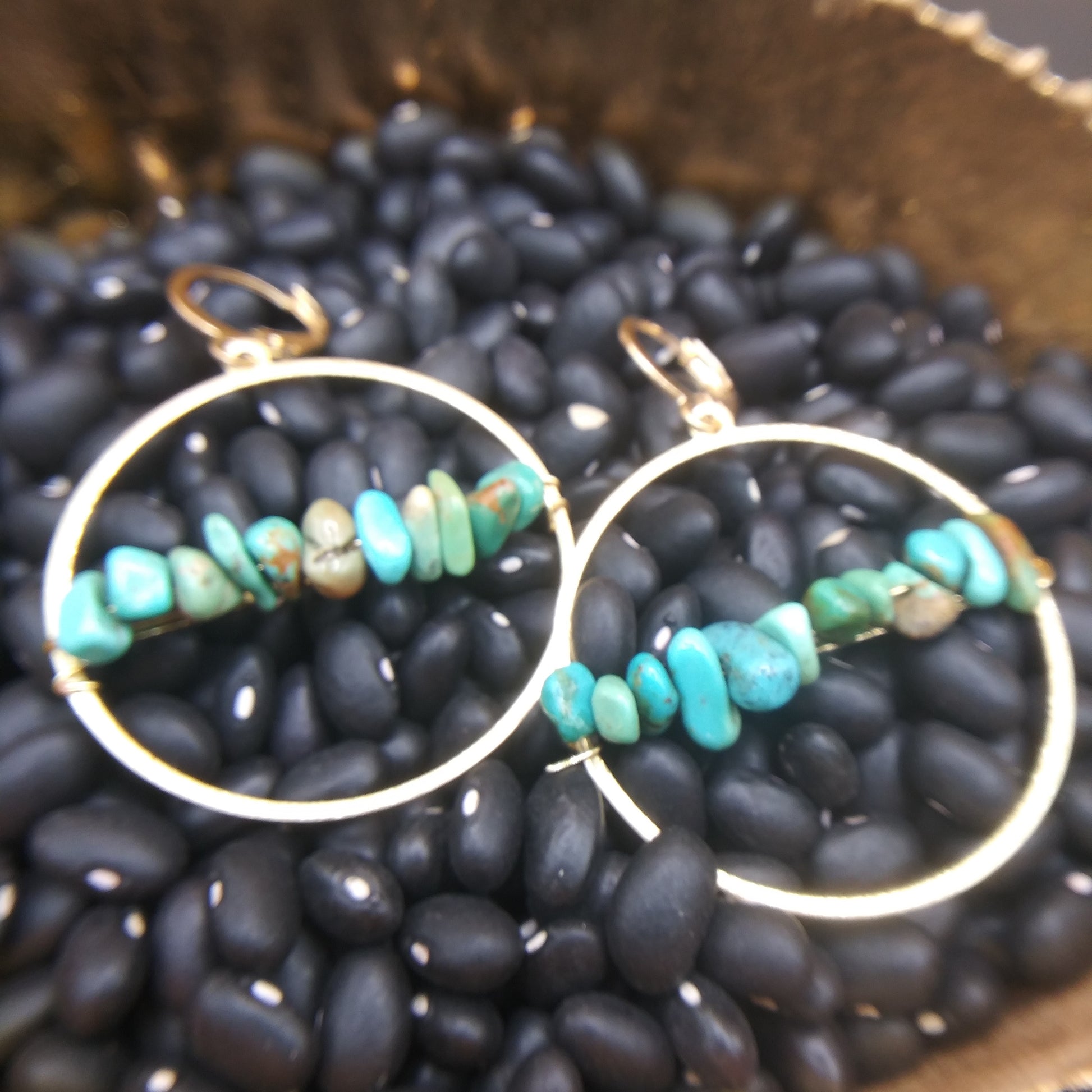 Natural turquoise on gold tone earrings are made with stainless steel lever back ear wires.